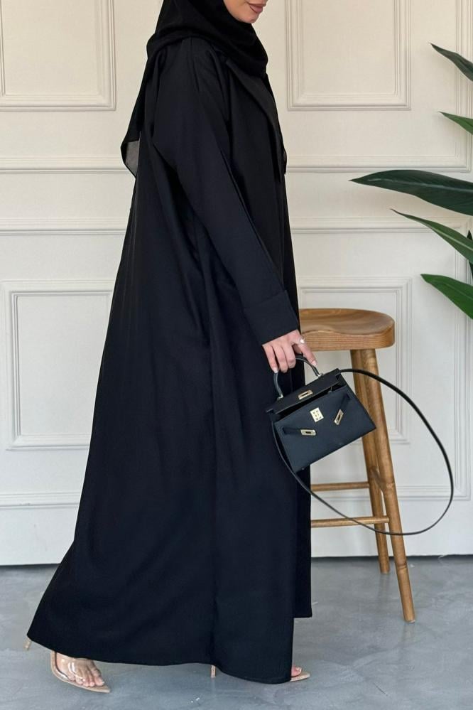 • عبايات قماش الكتان الأنيقة تأتي مع الطرحة، مما يجعلها خيارًا مثاليًا للمرأة العصرية.