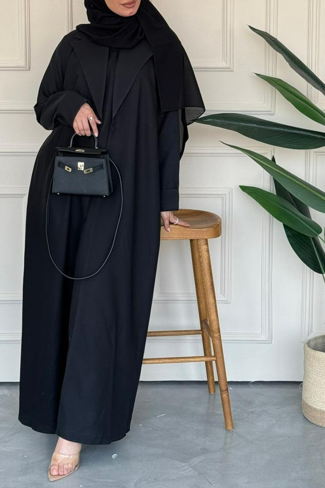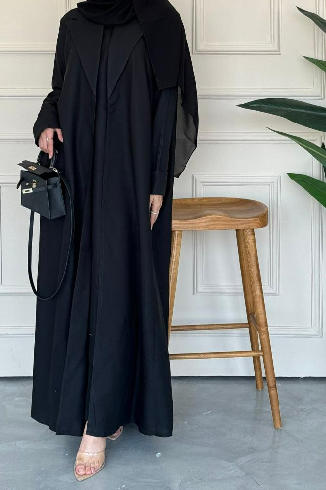 • تتيح هذه الياقة للمرأة إطلالة متكاملة، حيث يمكنها ارتداء الطرحة بنفس لون العباية أو بتنسيق لوني مختلف لإضفاء لمسة من الحيوية.